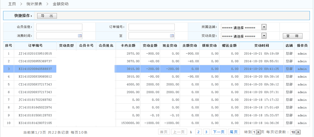 -> 五通一卡通云會員管理系統(tǒng)金額變動統(tǒng)計