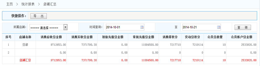 五通一卡通云會(huì)員管理系統(tǒng)店鋪匯總統(tǒng)計(jì)
