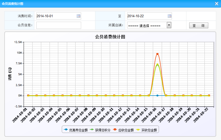 2.會(huì)員消費(fèi)統(tǒng)計(jì):將統(tǒng)計(jì)在滿足設(shè)定的條件下的所有消費(fèi)的概況