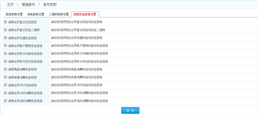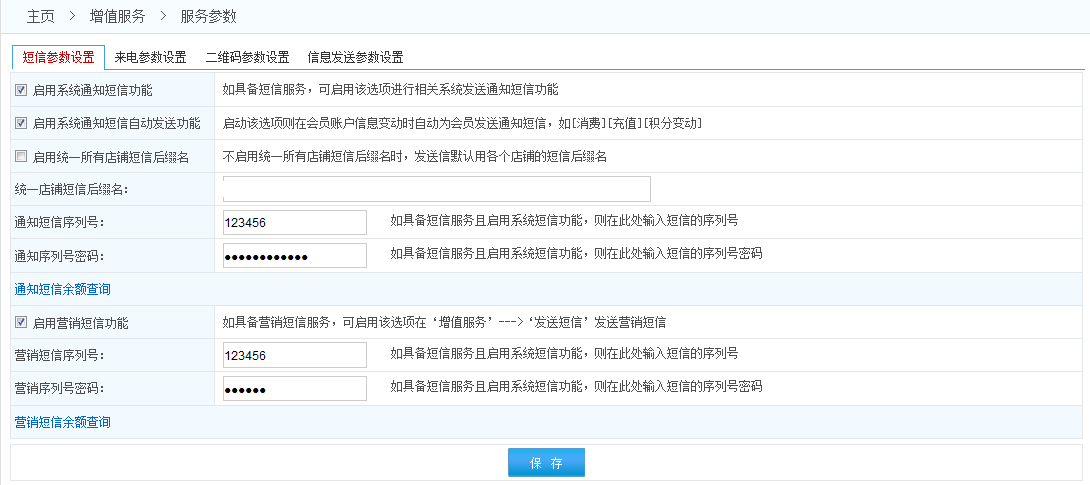 2.通知短信是會員在本系統(tǒng)中進(jìn)行消費充值等操作時給會員發(fā)的提醒短信;營銷短信是為了促銷等目的專門為一個或多個會員發(fā)送的(營銷短信有且只能在發(fā)送短信的頁面發(fā)送)
